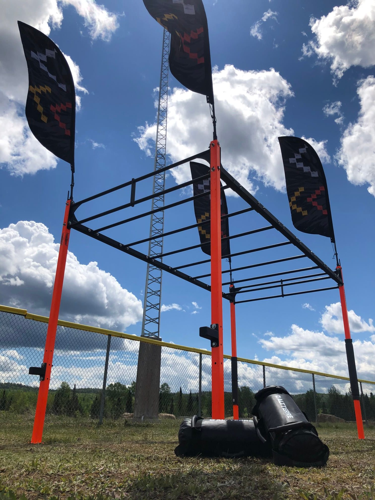 - 12 modules de jeux en acier, fabriqués au Canada, qui promettent une durabilité fiable ;